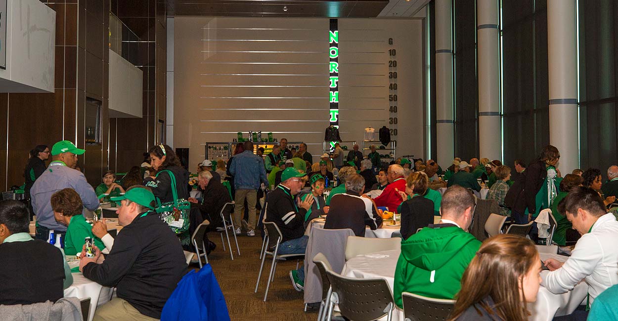 Located on the third floor of Apogee Stadium, the HUB Club features a 12,000-square foot climate-controlled space complete with reserved outdoor chair-back seats, private restrooms, gameday buffet with cash bar, and a private stadium entrance. Stadium-fund commitment and Mean Green Scholarship Fund contribution are required for all new HUB Club season seat purchases. For club seat availability, please call 940‑369‑7284.